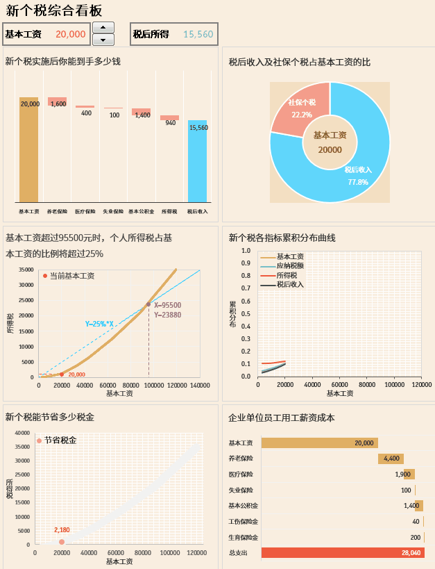 最後用(yòng)一個(gè)圖表組成的(de)動态看闆來綜合觀察新個(gè)稅的(de)情況。