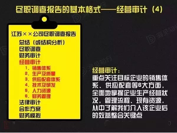 簡言之,即做好股東背景和(hé)管控結構、行(xíng)業(yè)和(hé)産品、經營和(hé)财務數據、同業(yè)态度的(de)調查,提供我們的(de)做法。