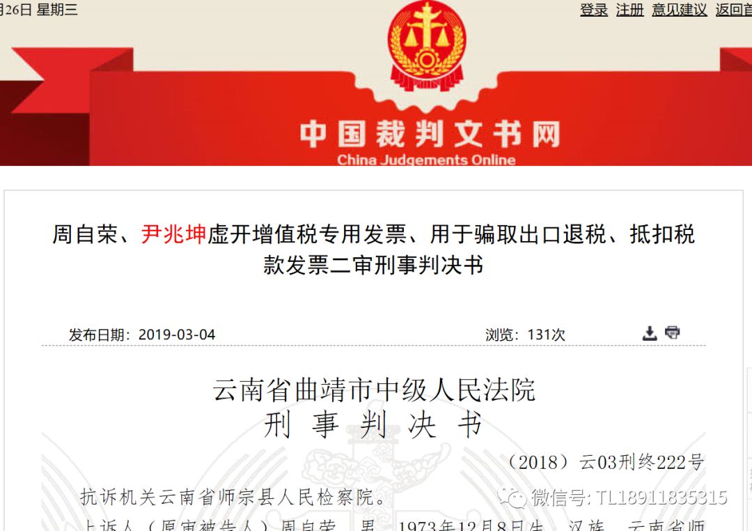 上(shàng)訴人(rén)(原審被告人(rén))尹兆坤,曾用(yòng)名尹兆昆,男,1982年9月(yuè)11日生,漢族,雲南省師(shī)宗縣人(rén),大(dà)專文(wén)化,雲南普瑞生物(wù)制(zhì)藥(集團)有(yǒu)限公司銷售主管,住師(shī)宗縣。因涉嫌虛開(kāi)增值稅專用(yòng)發票、抵扣稅款發票一案,于2016年11月(yuè)22日被師(shī)宗縣公安局刑事拘留,同年12月(yuè)29日經師(shī)宗縣人(rén)民(mín)檢察院批準逮捕,次日由師(shī)宗縣公安局執行(xíng)逮捕。現羁押于師(shī)宗縣看守所。