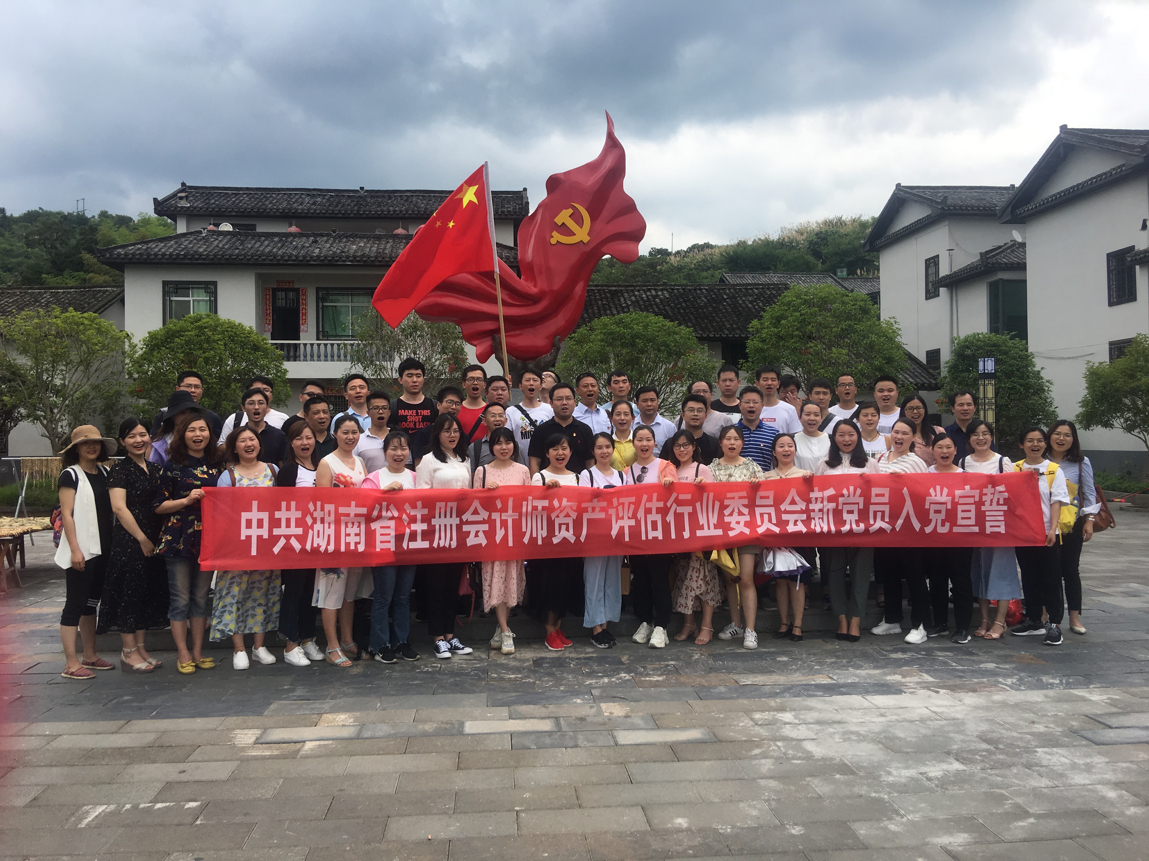 爲紀念中國共産黨誕辰98周年,6月(yuè)28日,中共湖南省注冊會(huì)計(jì)師(shī)資産評估行(xíng)業(yè)黨委組織2019年45名新發展黨員赴汝城縣文(wén)明(míng)瑤族鄉沙洲村“半條被子”故事發生地(dì)進行(xíng)新黨員宣誓,接受紅色革命教育。