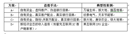筆(bǐ)者以收入舞弊爲例,總結了證監會(huì)查處以及實務中IPO企業(yè)财務造假的(de)案例,其典型性套路(lù)爲:通過虛構采購(gòu)、銷售和(hé)僞造銀行(xíng)回單(如(rú)果客戶配合則爲真實銀行(xíng)回單),實現自有(yǒu)資金(jīn)/體外資金(jīn)循環,虛增銷售收入。主要包括以下四個(gè)類别: