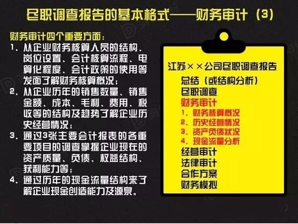 達到(dào)财務盡職調查目的(de),适當表達意見和(hé)建議;