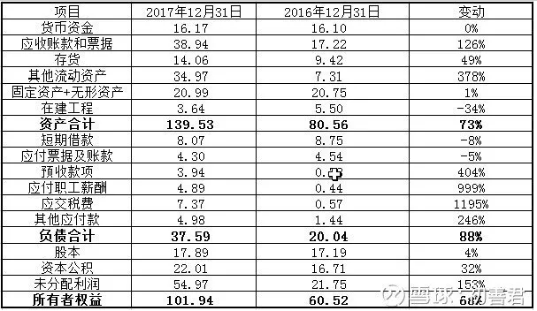 一是資産規模增加了73%,由80.56億增加到(dào)了139.53億元,主要是資本公積及未分(fēn)配利潤的(de)增加,即17年實現淨利潤的(de)大(dà)幅增加,與17年超高(gāo)的(de)淨利潤印證。