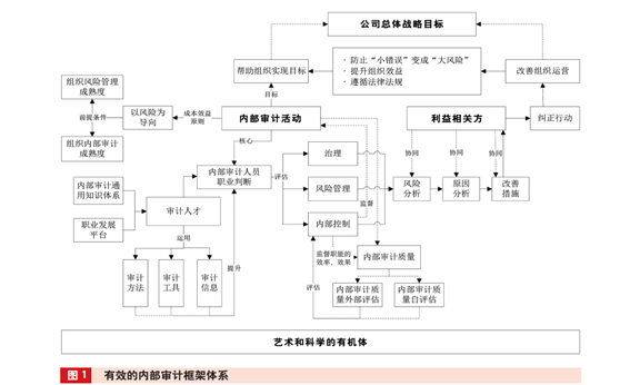 雖然不同的(de)組織受到(dào)其内部環境及自身發展水(shuǐ)平不同的(de)影響,内部審計(jì)部門在實際運作上(shàng)有(yǒu)所差異,但(dàn)内部審計(jì)部門在構建其自身運行(xíng)時通用(yòng)的(de)理(lǐ)念和(hé)思考邏輯是一緻的(de)。本文(wén)結合多年實踐經驗中所總結的(de)行(xíng)爲因素,從内部審計(jì)的(de)本質出發,進行(xíng)了系統性的(de)理(lǐ)論探索,認爲有(yǒu)效的(de)内部審計(jì)活動是藝術(shù)和(hé)科學的(de)有(yǒu)機體,其框架體系如(rú)圖1所示。